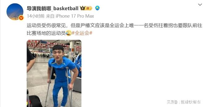 男篮全运最悲壮一幕!辽篮小将拄拐杖参赛:登场砍2分成温馨一幕