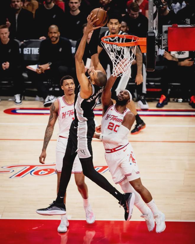 阿门-汤普森站出来,第三节独得11分,帮助火箭保持微弱领先。三节打完,火箭86-84仅领先马刺2分,文班已经4犯了。第四节开始,文班防守阿门,坚持收缩篮下!火箭进攻突然断电,文班不断造杀伤,马刺一波11-0完成反超。