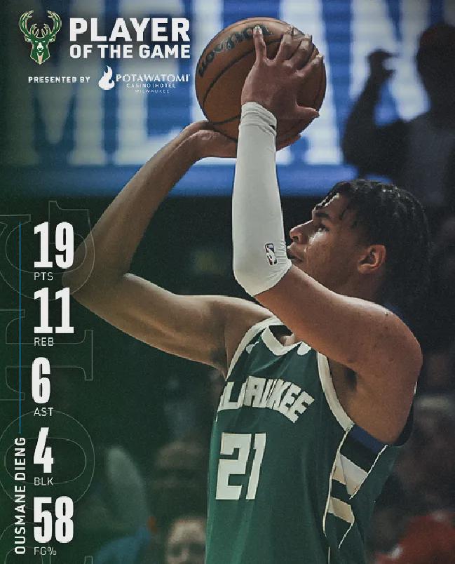 最近结束的雄鹿110-93击败雷霆比赛,吉昂手撕老东家,首发出战约37分钟,投篮12中7贡献19分11板6助1断4帽全面数据,攻防两端存在感拉满。