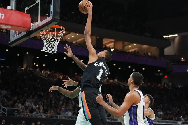 ——第三节刚开始,还是福克斯与文班亚马连线,非常高的一个抛球,文班亚马扣进还造成了基根穆雷犯规