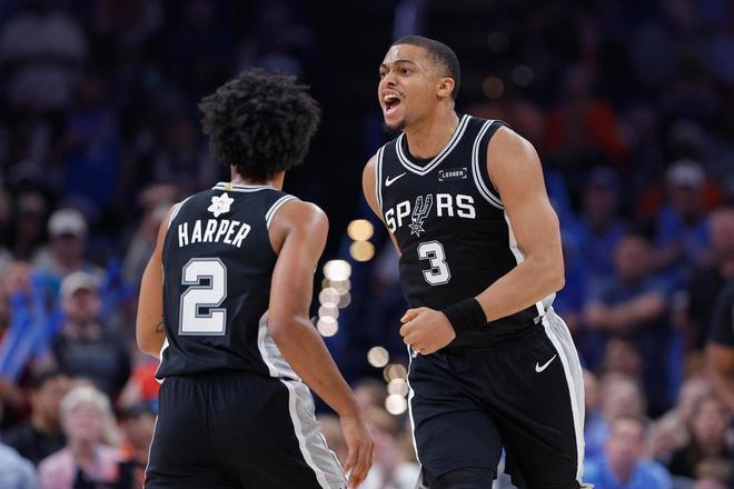 雷霆上赛季还是联盟最年轻球队,常规赛统治级,最终直接夺冠。马刺显然没有雷霆那么年轻,但轮换里大量球员25岁以下/没打过季后赛:文班亚马、卡斯尔、哈珀、瓦塞尔、凯尔登・约翰逊都在其中。