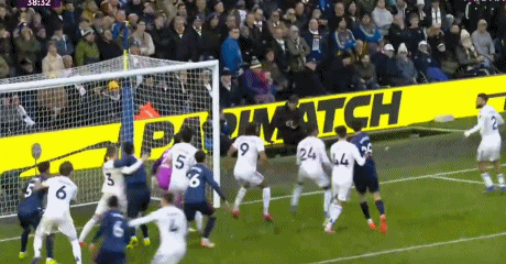 第38分钟,马杜埃凯主罚右侧角球直接射门,达尔洛双拳解围失误,将球打入本方球门,2比0!