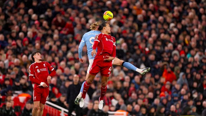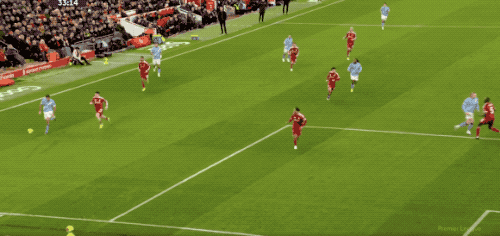 下半场开始后,场上风云突变,利物浦大举压上,曼城越踢越被动。第54分钟,接到萨拉赫的传中,埃基蒂克头球顶偏,错失良机。