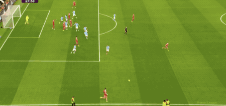 第93分钟,哈兰德操刀主罚,骗过阿利松,将球打进,曼城反超比分。