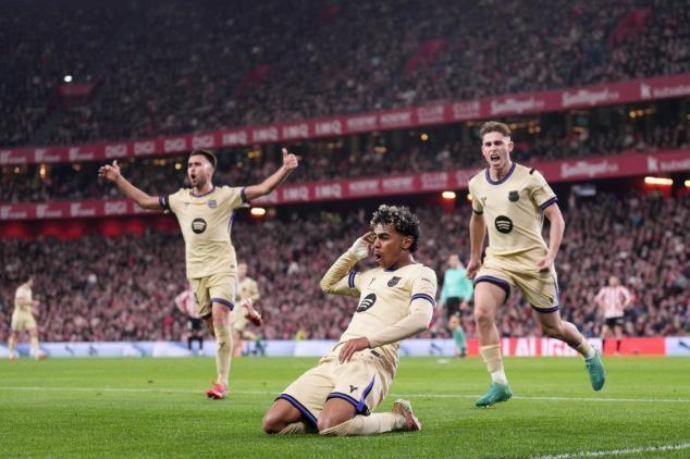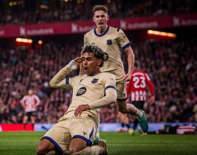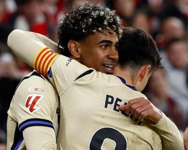 从本场比赛的进程来看,相信所有人都会发出感叹,巴萨的“小孩哥”又用一次神仙球,解决了所有问题。上半场,主场作战的毕尔巴鄂竞技给巴萨制造了巨大的麻烦。开场仅仅几分钟,坎塞洛就险些自摆乌龙,他的解围球重重砸在横梁上,惊出客队一身冷汗。随后戈麦斯因脚踝扭伤离场,更是让比赛的激烈程度肉眼可见。第42分钟,伊尼亚基·威廉姆斯曾打入一球,但越位在先被判无效。整个上半场,巴萨的进攻陷入了毕尔巴鄂竞技高强度的绞杀之中,甚至没有一脚射正,创下了本赛季至今的最差纪录。