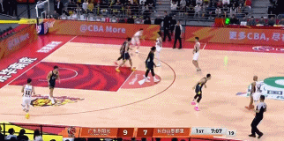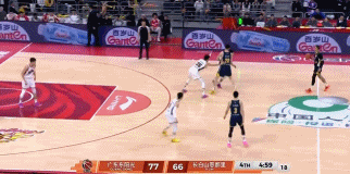 下半场易边再战,杜锋先发少杰洪泽文逸,奎因萨姆纳带队,继续提速,身背3犯的萨姆纳开局里突外投连得5分,奎因助攻王少杰暴扣吃饼,广东3分钟7-2,将分差扩大到23分!