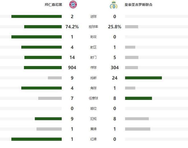 本赛季表现神勇的卡尔,在第39分钟人球分过杀入圣吉罗斯联合禁区,随后被防守球员拉拽倒地,但主裁判没有任何表示,1分钟之后,拜仁右侧角球开出,格雷罗前点甩头攻门,但皮球稍稍高出横梁,双方带着0-0的比分,回到了中场更衣室。